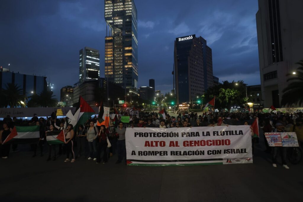 🚩🚢 "No son terroristas, son activistas": así se vive la protesta pro-Palestina en CDMX, donde exigen a Israel liberar a flotilla Sumud, con mexicanos a bordo.