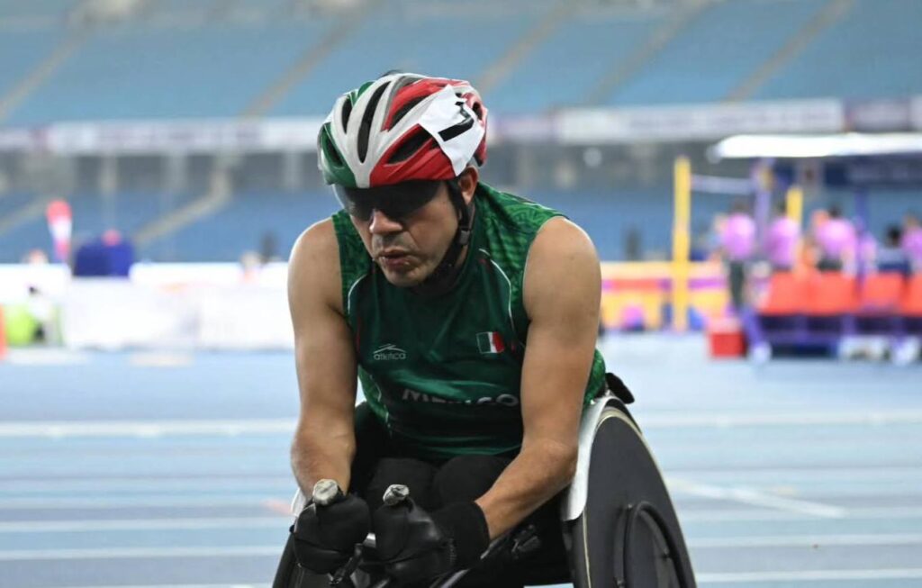 El medallista paralímpico mexicano Edgar Cesáreo Navarro se colgó la medalla de bronce en la prueba de 100 metros T51 del Mundial de Para Atletismo Nueva Delhi 2025, al registrar 22.23 segundos, su mejor marca de la temporada.