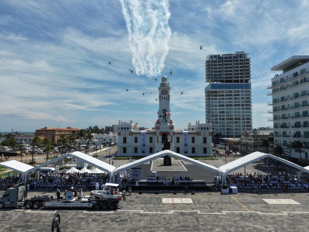 La ceremonia incluyó ejercicios tácticos con embarcaciones, helicópteros y unidades del Plan Marina, seguidos de un desfile conmemorativo en el centro de Veracruz.