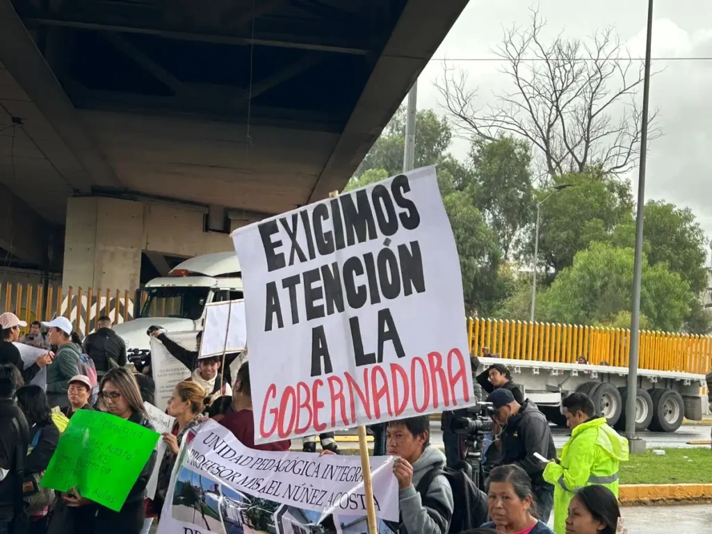 Los manifestantes, encabezados por el profesor Víctor Rodríguez, piden que la gobernadora Delfina Gómez, ex secretaria de Educación Pública, cumpla los acuerdos establecidos en reuniones previas, donde se prometieron acciones en beneficio del sector educativo.