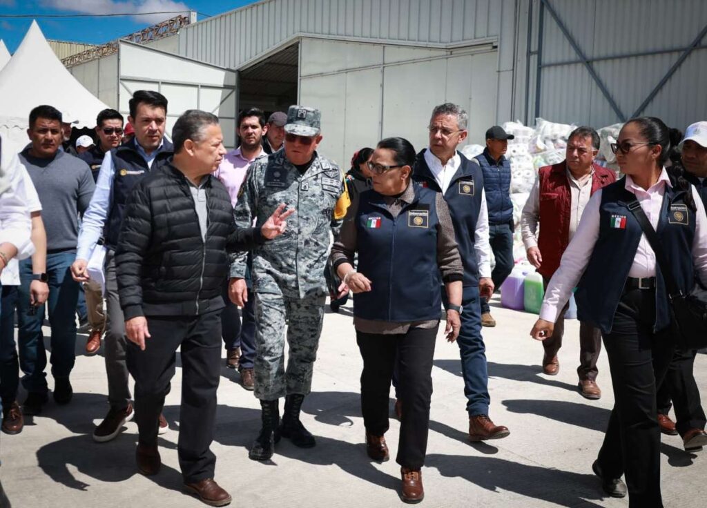 Rodríguez compartió imágenes del recorrido en helicóptero y señaló que también visitaron los hangares donde se organiza el acopio de víveres, en coordinación con las Secretarías de la Defensa Nacional y de Marina.