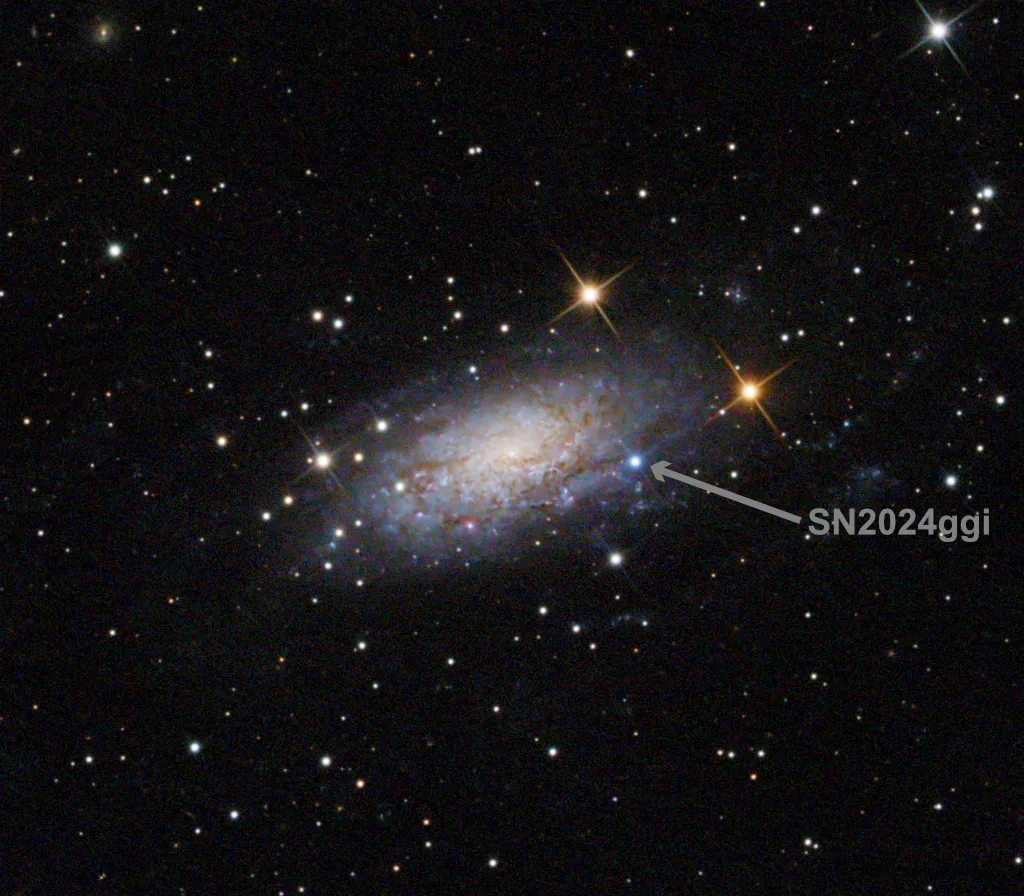 La estrella que dio origen a SN 2024ggi tenía cerca de ocho veces la masa del Sol y se encontraba en la galaxia NGC 3621, hacia la constelación de la Hidra, a 22 millones de años luz.