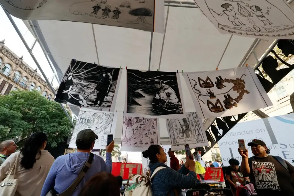 Un llamado cultural y de justicia por Eloxochitlán resonó este miércoles frente a la Suprema Corte de Justicia de la Nación, donde la colectiva Mazatecas por la Libertad instaló una carpa con una galería de códices gráficos que narran más de una década de persecución política: más de 40 detenciones —la mayoría ya absueltos— y más de 200 órdenes de aprehensión contra integrantes de la comunidad.