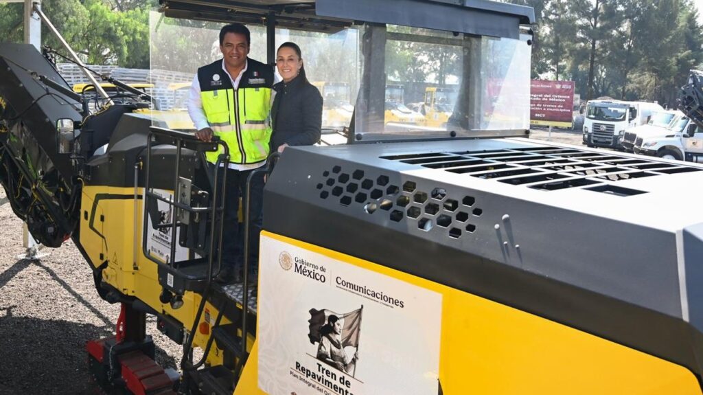 La presidenta Claudia Sheinbaum Pardo recordó que durante este año su gobierno adquirió 30 trenes de repavimentación y avanza en la rehabilitación y modernización de carreteras federales y caminos alimentadores, como parte de una estrategia nacional para mejorar la infraestructura vial.