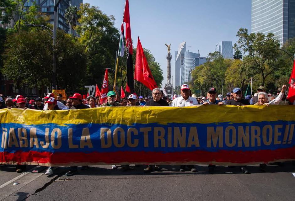 Cientos de manifestantes avanzaron por los carriles centrales de Paseo de la Reforma, los cuales fueron cerrados en ambos sentidos por agentes de tránsito para permitir el paso del contingente. Durante la movilización, ondearon banderas de Venezuela y México, además de portar carteles con mensajes como “Abajo la doctrina Monroe”.