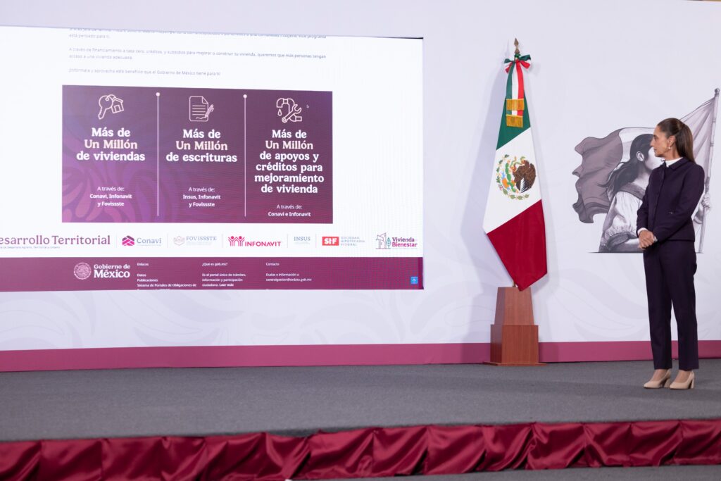 Resaltó también el programa de escrituración, con una meta sexenal de un millón de escrituras, así como la reducción de tasas de interés de los créditos, en beneficio de cinco millones de familias.