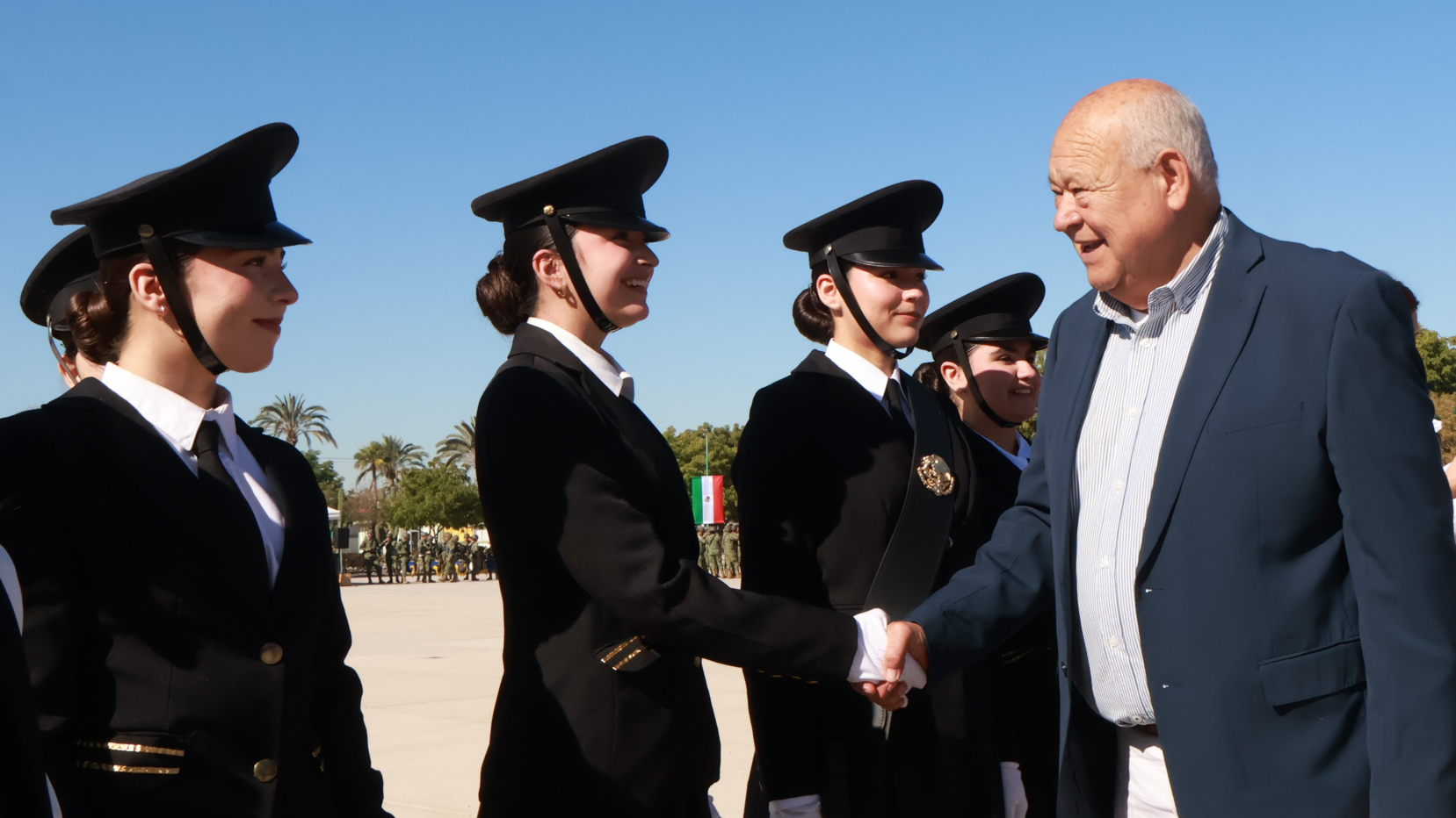 El gobernador de Baja California Sur, Víctor Manuel Castro Cosío, encabezó la ceremonia conmemorativa del Día de la Bandera en las instalaciones de la Tercera Zona Militar, acompañado por mandos de las Fuerzas Armadas, representantes de los poderes Legislativo y Judicial, así como por la alcaldesa de La Paz, Milena Quiroga Romero, y estudiantes de distintos planteles educativos.