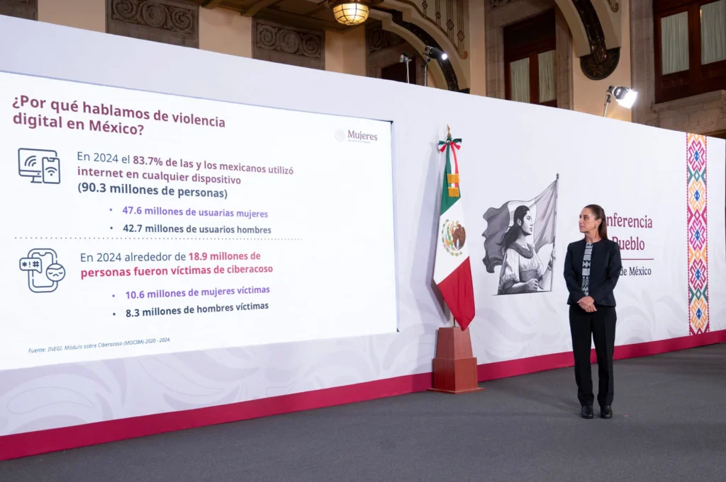La mandataria mencionó que, tras un reciente episodio de acoso ocurrido en el Zócalo de la Ciudad de México que posteriormente se difundió en redes sociales, ella misma podría presentar una denuncia por violencia digital.