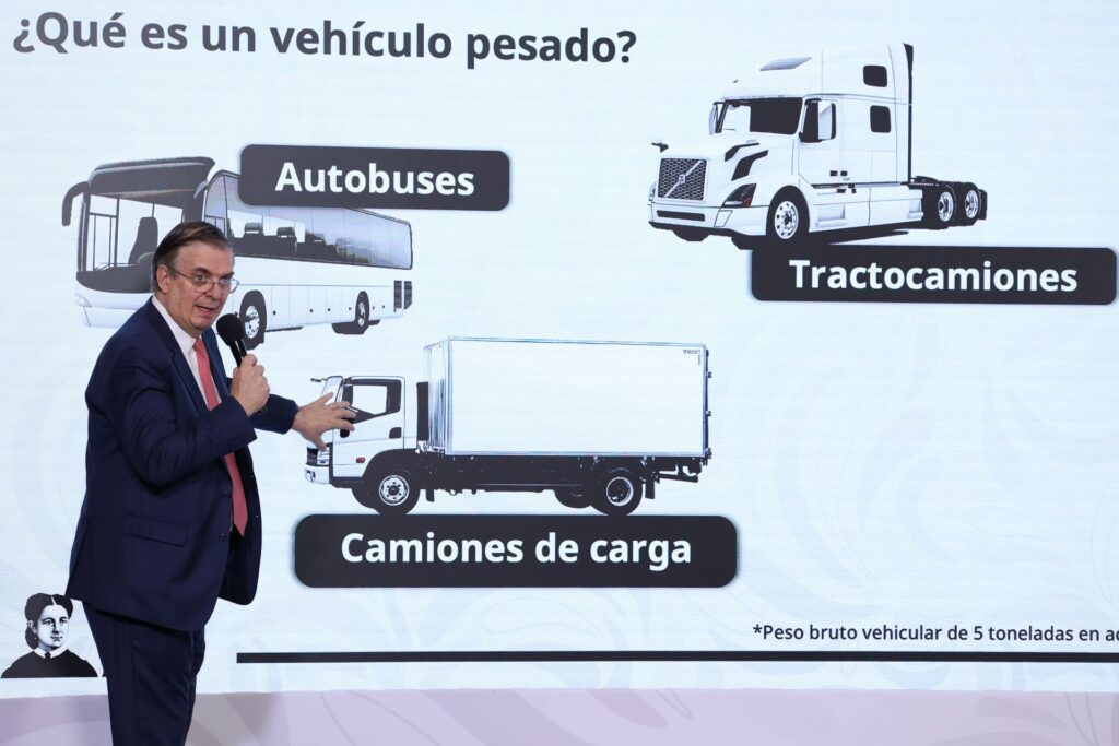 El secretario de Economía, Marcelo Ebrard, anunció la puesta en marcha de un programa para renovar la flota de autobuses, camiones y tractocamiones en el país, con el objetivo de modernizar el sector y reducir emisiones contaminantes.