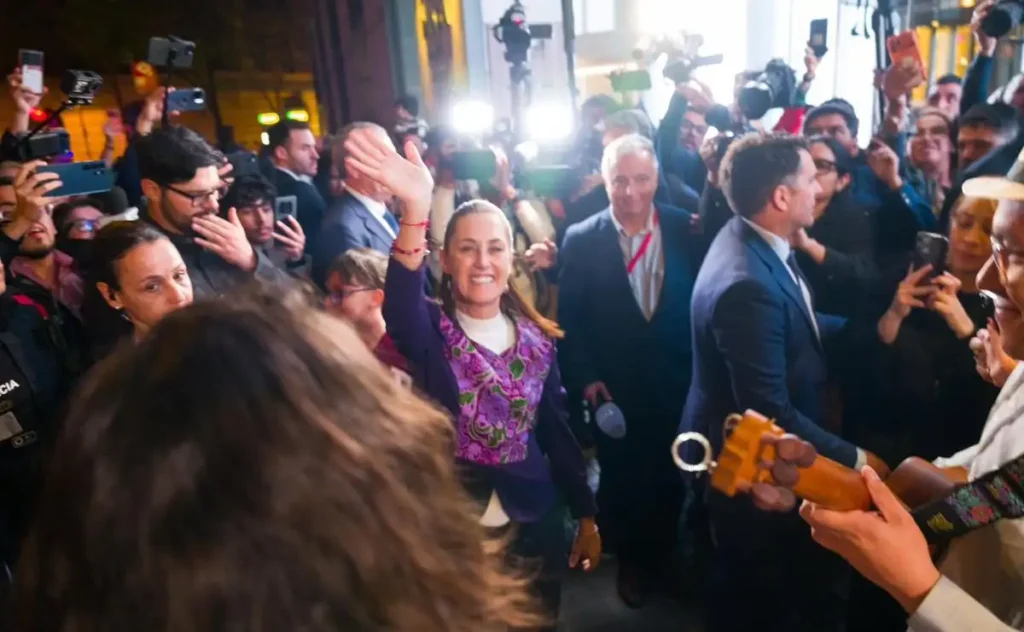 Acompañada por un fuerte dispositivo de seguridad, Sheinbaum se acercó a saludar a quienes acudieron a recibirla, entre ellos familias, niños e incluso un bebé de seis meses. Una adolescente mexicana le entregó un ramo de flores.