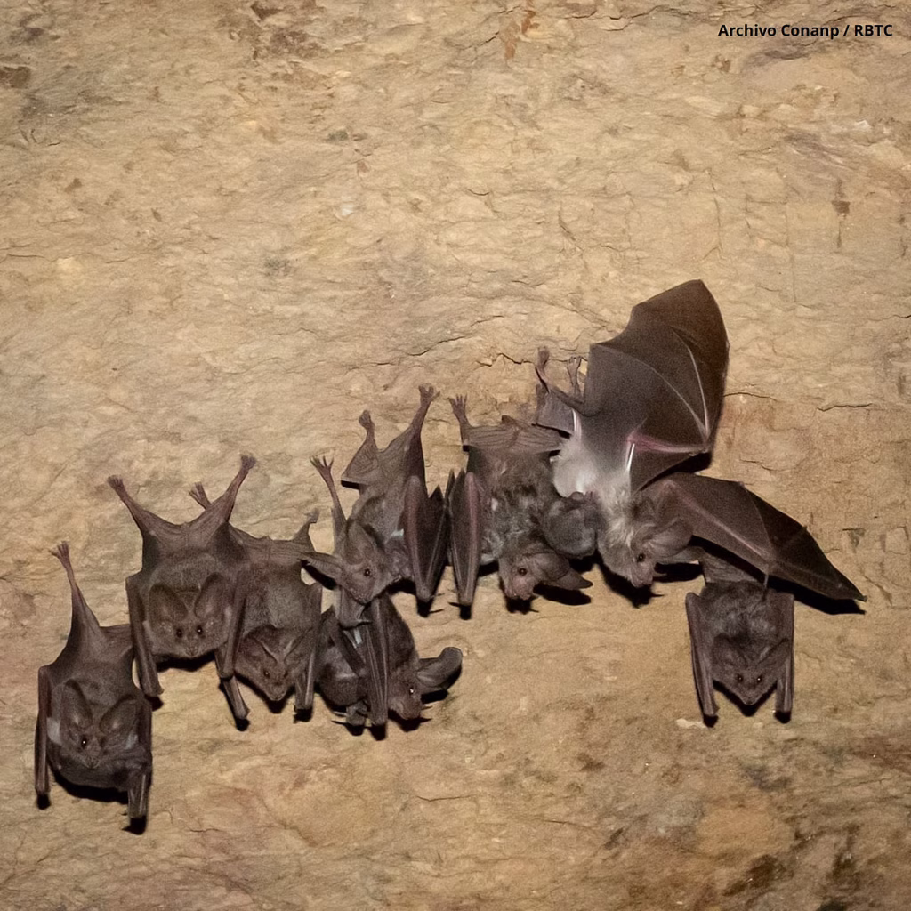 Además, la cueva funciona como refugio temporal para especies migratorias como el Leptonycteris yerbabuenae, esencial para la polinización de cactáceas en la región.