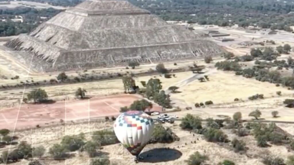 El incidente ocurrió la mañana de este martes, a unos 200 metros de la Pirámide del Sol y la Calzada de los Muertos, luego de que el globo se quedara sin combustible.