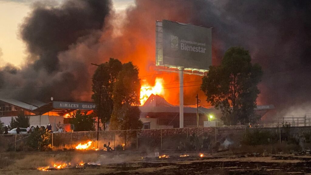 📢 Un incendio arrasó con las bodegas de Alimentación para el Bienestar en Zacatecas, sede de Segalmex. 👉 Autoridades investigan posible origen provocado.